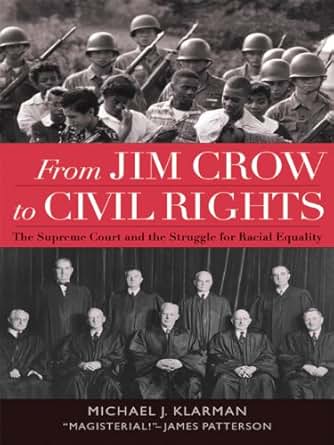 From Jim Crow to Civil Rights: The Supreme Court and the ... FROM JIM CROW TO CIVIL RIGHTS: THE SUPREME COURT AND THE STRUGGLE FOR RACIAL EQUALITY. By Michael J. Klarman. New York: Oxford University Press, 2004. Scholars writing about black-white relations in the United States typically offer either optimistic or pessimistic narratives. From Jim Crow to Civil Rights: The Supreme Court and the ... From Jim Crow to Civil Rights: The Supreme Court and the Struggle for Racial Equality [Michael J. Klarman] on Amazon.com. *FREE* shipping on qualifying offers. A monumental investigation of the Supreme Court's rulings on race, From Jim Crow To Civil Rights spells out in compelling detail the political and social context within which the Supreme Court Justices operate and the consequences of ... From Jim Crow to Civil Rights - Paperback - Michael J ... A monumental investigation of the Supreme Court's rulings on race, From Jim Crow To Civil Rights spells out in compelling detail the political and social context within which the Supreme Court Justices operate and the consequences of their decisions for American race relations.